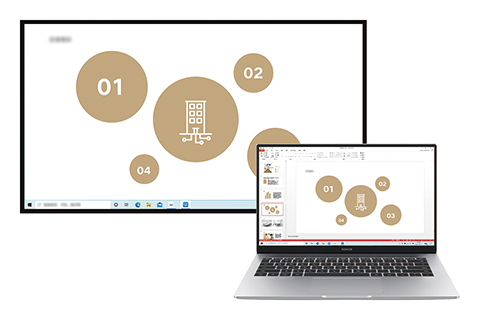 例如:您可以在电脑编辑PPT时,在大屏上预览幻灯片。