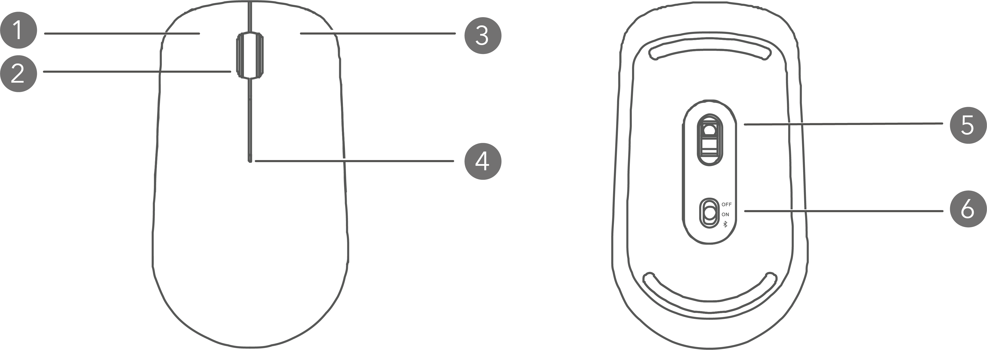 处并保持 3 秒,指示灯闪烁后松开,鼠标进入配对状态。